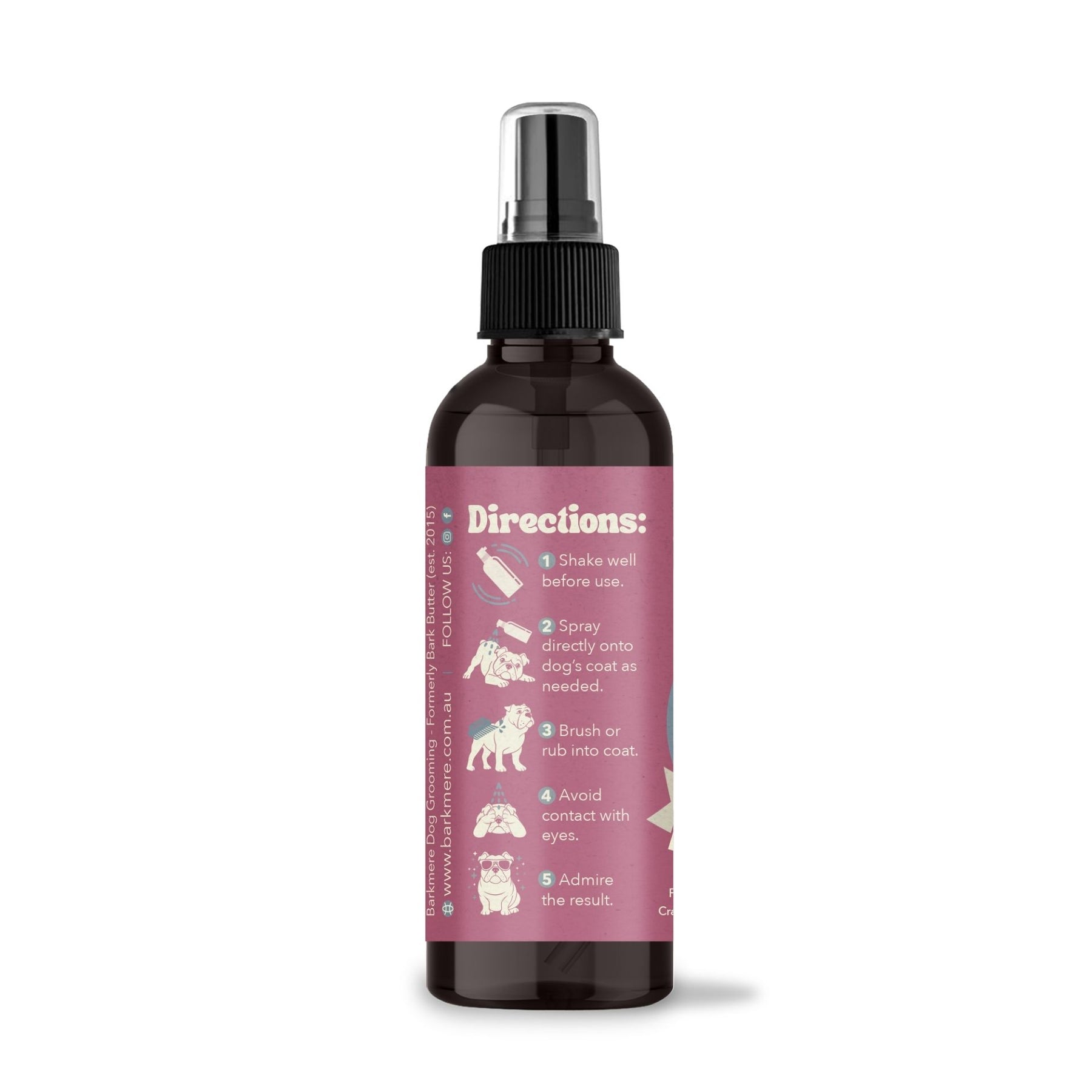 • Spritz lightly over your dog’s coat, brush in if needed.