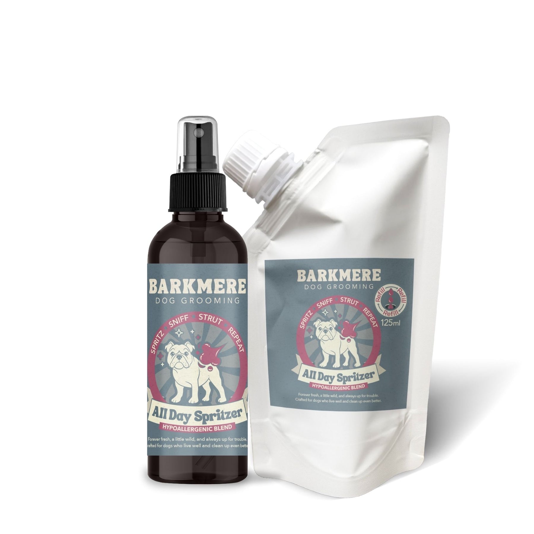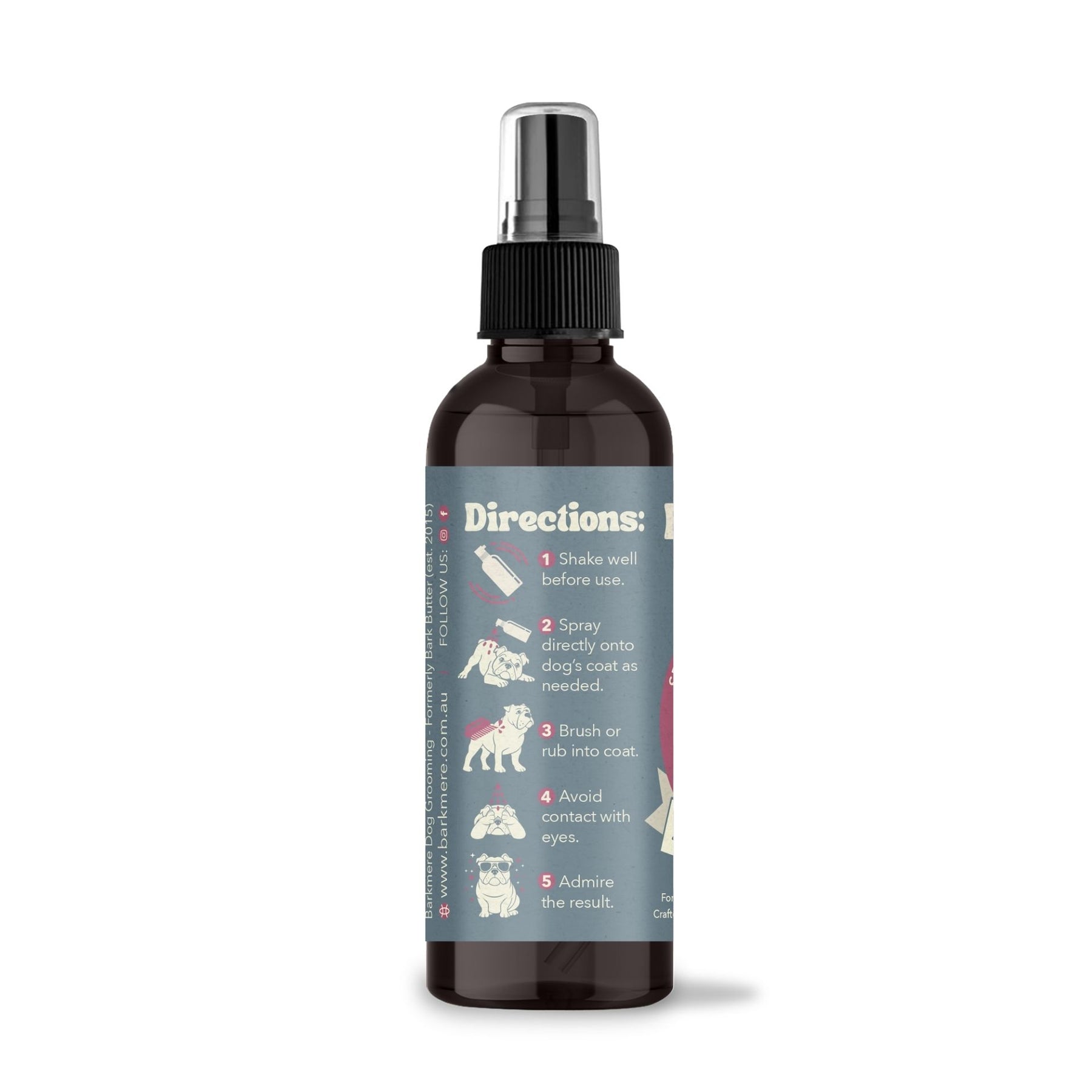 Spritzer, filtered rainwater and organic Australian lavender, gentle for sensitive pups.